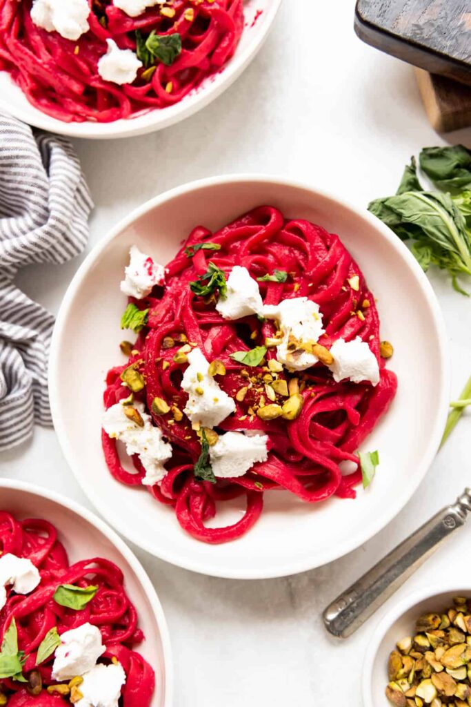 Everyone knows that beets and goat cheese make a perfect pair. Turns out, they also make a perfect pasta sauce. The vibrant hue from the beets gives this dish a real wow factor, while the creamy and tangy goat cheese provide a complex depth of the flavor.